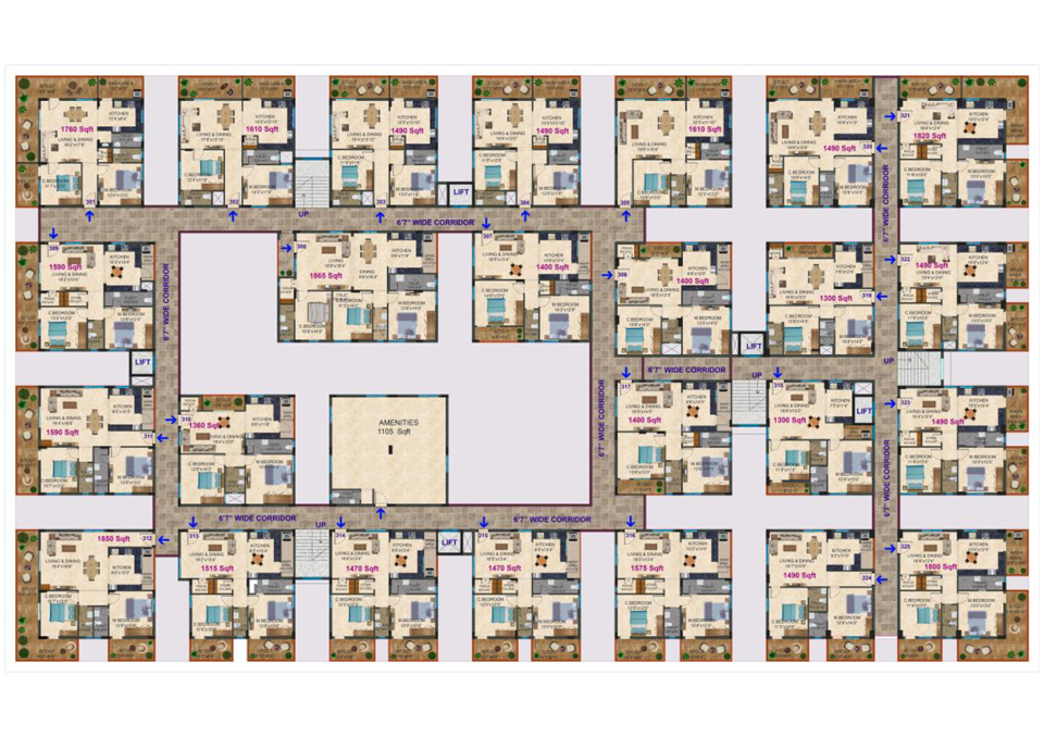 Contain 2BHK & 3 BHK FLATS (1100Sft -1875sft)